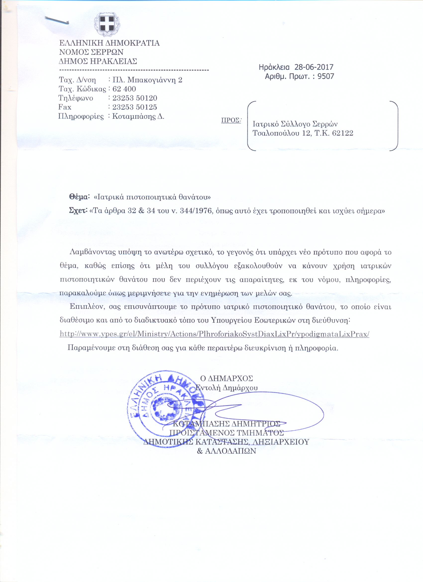 Και η προηγούμενη εγκύκλιος για το ίδιο θέμα Νέες οδηγίες για τα πιστοποιητικά θανάτου. Για τα πιστοποιητικά θανάτου 1, 2 & 3